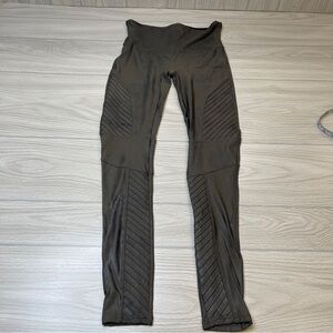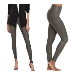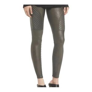 SPANX Faux Leather Moto Green Gray Gunmetal Tummy Control Leggings Womens Size M