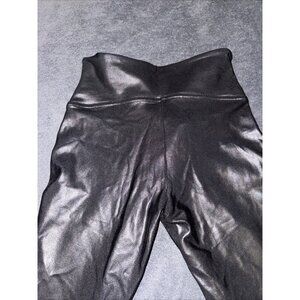 SPANX Faux Leather Moto Leggings Curve Fit Stretch Shape wear Pants Black Sz S/P