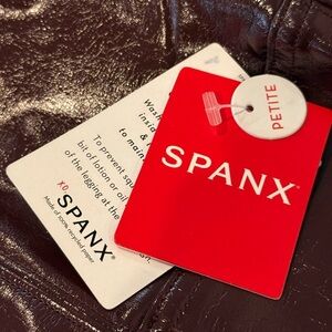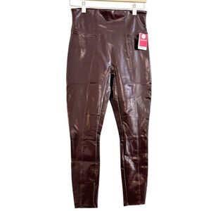 SPANX Faux Leather Patent Leather Ankle Leggings Ruby Red Burgundy Size MP NEW