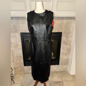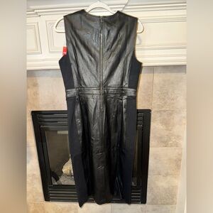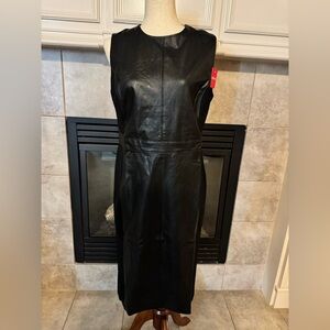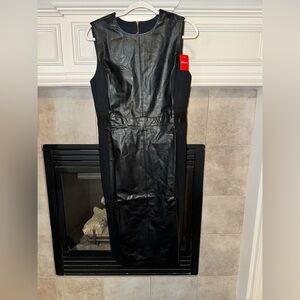 SPANX Faux Leather Sleeveless Fitted Sheath Dress Black Stretch Size Large NWT