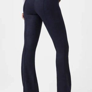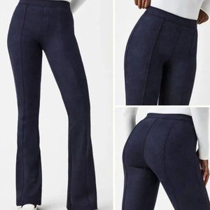SPANX Faux Suede Flare Pants Pull On Stretchy Slimming Navy Blue Boho NWT