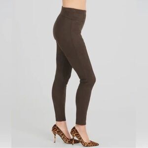 SPANX Faux Suede Leggings Dark Brown Seamed Pull On Size Large