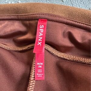 SPANX Faux Suede Leggings Rich Caramel brown pull on smoothing high rise high waisted