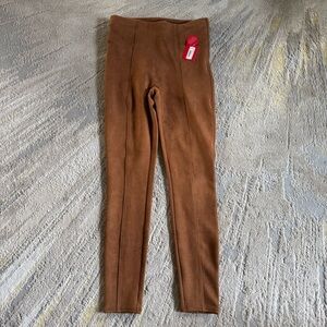 SPANX Faux Suede Leggings Rich Caramel brown pull on medium new