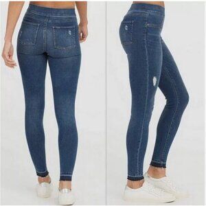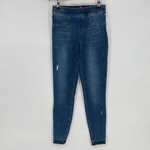SPANX Flat Front Distressed Skinny Pull On Jeans Medium Wash Raw Hem Size SP