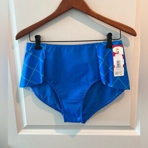 Add a pop of color to your swimwear collection with these Spanx flirty skirted swim briefs. The geometric pattern in shades of blue is eye-catching and perfect for a day at the beach.