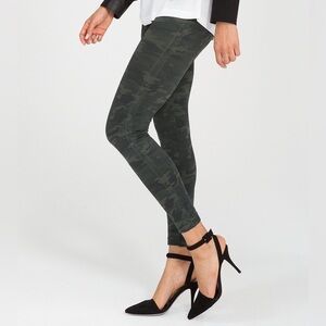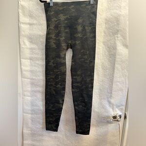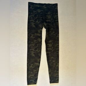 SPANX Green and Black camo Leggings with Form-Fitting Stretch Sz-L. T14