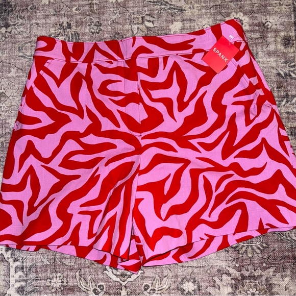 SPANX High Waist Zebra Print Shorts - Red and Pink NWT Size Large