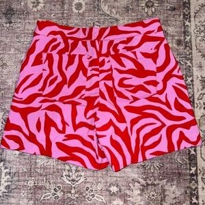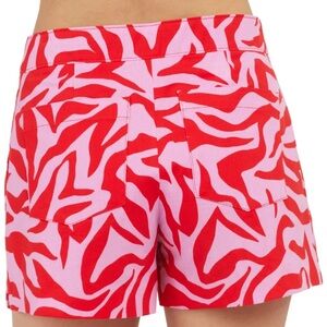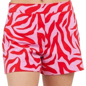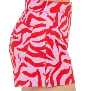 Bold zebra pattern shorts by SPANX. High waist design. Eye-catching red and pink colors.