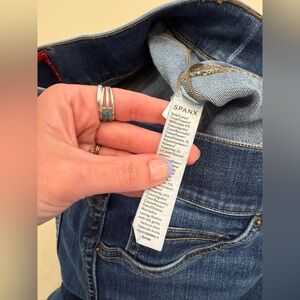 Experience the perfect blend of style and comfort with these SPANX Blue Skinny Jeans. Crafted in a classic medium-dark blue wash, these jeans offer a sleek, fitted silhouette with a modern stretch quality for ease of movement. Ideal for any occasion, they maintain a uniform appearance without dramatic distressing, ensuring a timeless look.