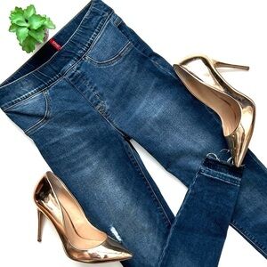 SPANX Jean-ish Leggings Skinny Jeans Distressed Released Raw Fray Hem Size Small