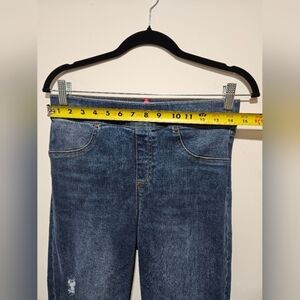Women's Size Medium SPANX Jeans. Inseam 27. Front Pockets are Fake. Has Tummy Control Band Inside.