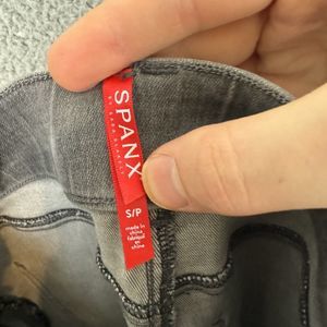 SPANX Jeans Womens S Gray Distressed Denim Pull On Skinny Raw Hem