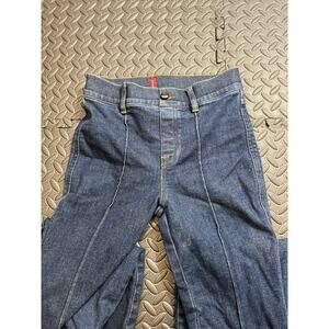 SPANX Jeans Womens XS Blue Pintuck Flare Raw Indigo Pull On Stretch Wide Leg