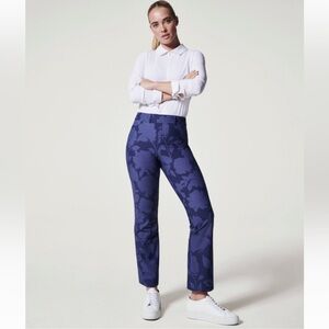 SPANX Kick Flare Sunshine Floret Navy Blue Pull-On Pant Stretch Size XL Petite