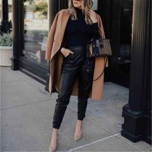 SPANX Leather Like Joggers Black Faux Vegan Size XL
