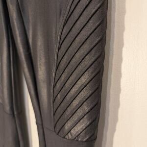 SPANX Leggings Faux Leather Moto Mid Rise Ankle Black Coated Stretch - Size S