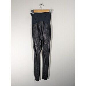 SPANX Leggings Women Small Maternity Black Faux Leather Full Panel