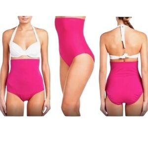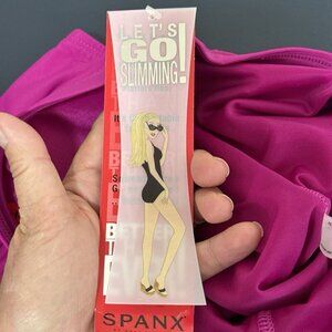 SPANX Let's Go Slimming Swimwear High Waist Bottom Women 10 Berry Pink New 8682