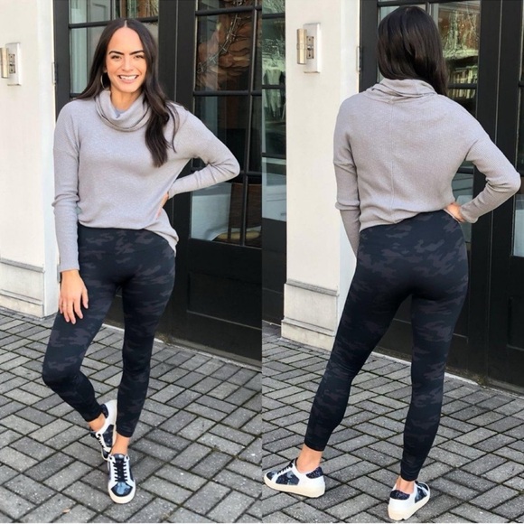 SPANX Look At Me Now Seamless Leggings High Rise in Black Camo Size L