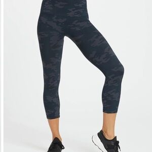 SPANX Look at Me Now Seamless Cropped Leggings Size Medium Black Grey Camo