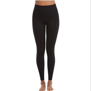 Double-layer waistband slims stomach and fabric is center-seam free-no more camel toe! Comfortable, seamless shaping firms all around. Matte yarn features a twill knit construction for a spectacular feel & fit. Designed to hit at your natural waist for great coverage and no muffin top! Black.