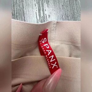 SPANX Mid-Thigh Short- Champagne Beige Slimming Raw Hem Size Large Like New