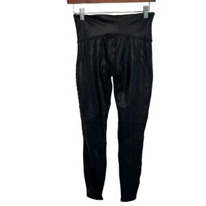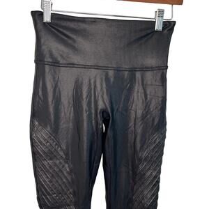 SPANX Leggings moto faux-leather. Black with quilted texture. Like new, worn once. Size medium. Black.