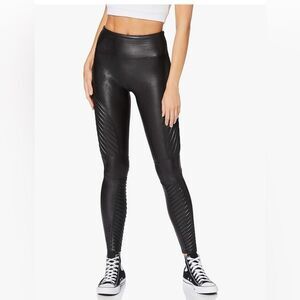 SPANX Moto Leggings Faux Leather Black Ribbed M