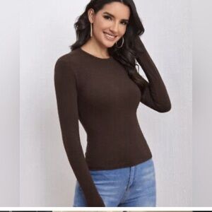 Spanx Classic Long Sleeve Top Bittersweet Brown Invisible Shapewear