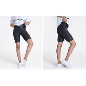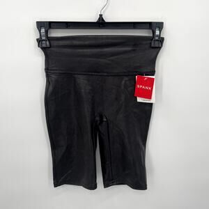 SPANX NWT Faux Leather Bike Biker Short in Black // XS
