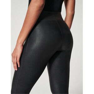 Faux Leather that flatters. This best-selling style features sleek, smoothing faux leather fabric that shapes and lifts and our contoured Power Waistband for core compression.
