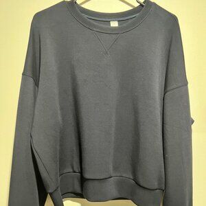 Elegant navy crew neck sweater. Soft and comfortable. Perfect for casual wear.