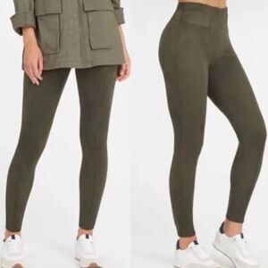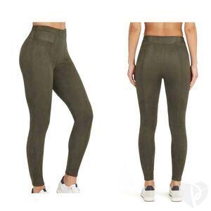 SPANX Olive Green Faux Suede Leggings Ankle Length Tummy Control Stretch Size S