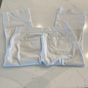 In good used condition. No holes or stains. White. High rise. Pull on design. 25" inseam. Women's size 1X.
