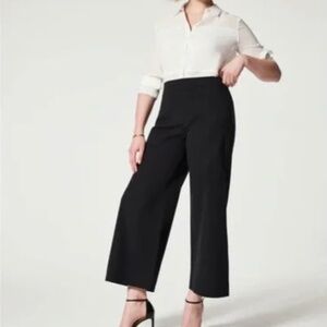 SPANX On-the-Go Wide-Leg wide Leg Black Pants cropped Size XS Petites
