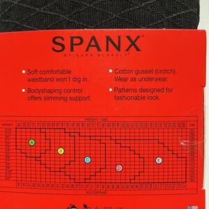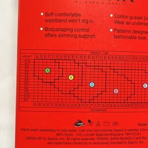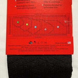 Spanx by Sara Blakely Tight-End Tights, Patterned, Bodyshaping. Size B, Black, Diamond Foil. Cotton crotch. Wear as underwear. Bodyshaping control offers slimming support. See picture for size chart. Made in USA. Hand wash. Nylon/Spandex.