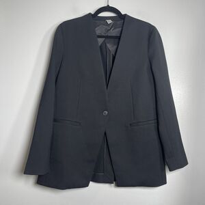 Look effortlessly chic in this Spanx Perfect Collarless Blazer in medium size and black color. Made from rayon outer shell material with stretch features, this blazer offers a relaxed and casual style that's perfect for any occasion, whether it's for travel, casual outings, formal events, workwear, or business meetings. The blazer comes with long sleeves, button closure, and is machine washable for easy care.