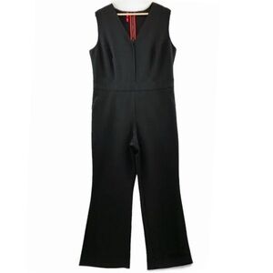 π π SPANX Perfect Jumpsuit | Black V-Neck Flare Wide-Leg Sculpting 1-Piece Sz SP