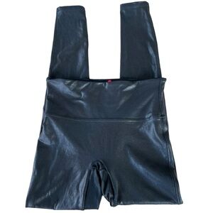 SPANX Ready To Wow Black Shiny Faux Leather Leggings Medium Stretch Comfortable