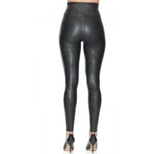 Tags: faux leather leggings, stretchy fit, edgy chic, night out style, figure flattering, sleek wardrobe, modern basics, versatile bottoms, statement fashion, casual glam, SPANX style, stylish comfort, bold everyday, black staple, contemporary leggings