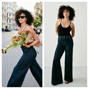 "Crafted from premium, 4-way stretch denim designed to hug your curves, our jeans are engineered with built-in targeted SPANX TummyTamer Tech™ that shapes your waist. Plus, with a wide leg and high waist, these jeans elongate your leg and celebrate your figure. All you have to do is pull these on: faux buttons and no zippers or hip pockets (so no bulk!). This is denim done right.