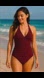 Exude poolside confidence with this alluring one-piece swimsuit. A universally flattering halter neckline ties elegantly at the nape of the neck, offering both style and adjustable support. The rich burgundy hue and subtle textured pattern create a sophisticated look, while built-in bust support ensures a comfortable and secure fit. Fully lined for modesty and enhanced with UPF 40+ protection, this swimsuit is perfect for leisurely days at the beach, relaxing by the pool, or enjoying a tropical vacation.