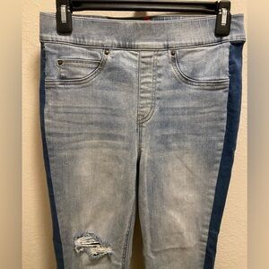 SPANX Side Stripe Distressed Skinny Jeans in light Wash Size M
