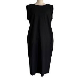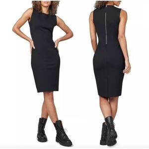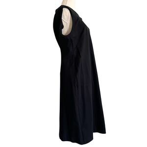 Chic black midi dress. Sleeveless with back zipper. Versatile style.