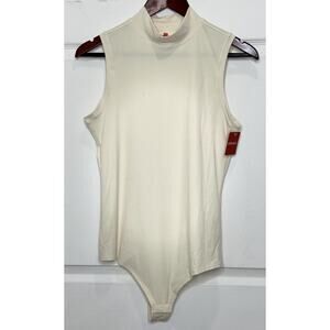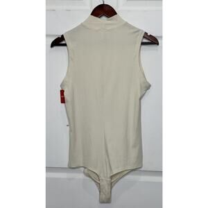 SPANX Sleeveless Bodysuit Smoother Ribbed Mock Neck Parchment Ivory Sz Large NEW