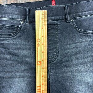 SPANX Straight Leg Pull On Jeans Black Wash Distressed Women’s Size Medium