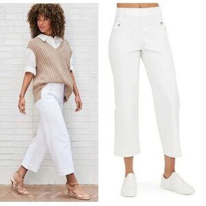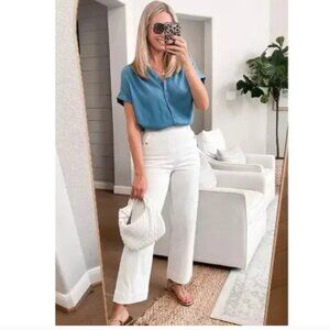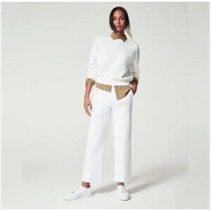 SPANX Stretch Twill Cropped Pant Wide Leg Parchment