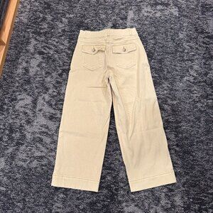 SPANX Stretch Twill Pull-On Cropped Wide-leg Pant. Color: Khaki, Size M.