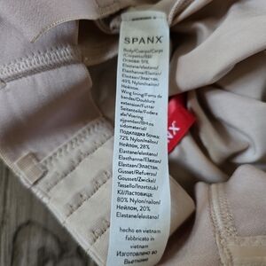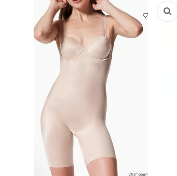 SPANX Suit Your Fancy Midthigh Bodysuit 4 way straps built in cup champaign
